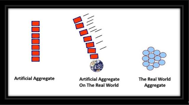 We must now realize that the structures of the brain and those of reality are quite different. To help us visualize this let us imagine that an understanding of the creative world generated by the human brain comes in the form of a stack of square blocks, with Natural counterparts coming in the form of balls. We might well imagine the blocks of our imagining to tumble and fall if built on reality. When building a square structure on a round reality, it immediately becomes unstable.